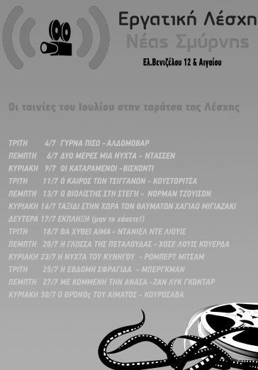 ΚΥΡΙΑΚΗ 9/7 ΠΡΟΒΟΛΗ ΤΑΙΝΙΑΣ ΟΙ ΚΑΤΑΡΑΜΕΝΟΙ ΤΟΥ ΛΟΥΚΙΝΟ ΒΙΣΚΟΝΤΙ ΠΟ ΤΗΝ ΕΡΓΑΤΙΚΗ ΛΕΣΧΗ Ν.ΣΜΥΡΝΗΣ