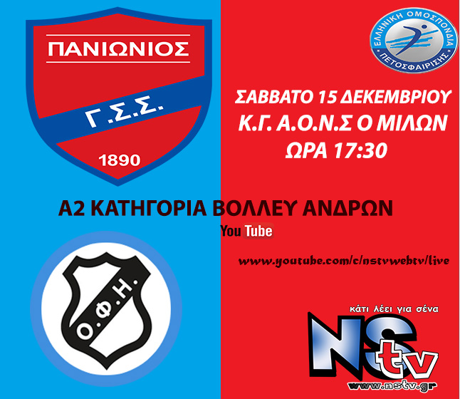 Live Streaming από το Nstv ο αγώνας Πανιώνιος-ΟΦΗ για την Α2 Βόλλευ Ανδρών