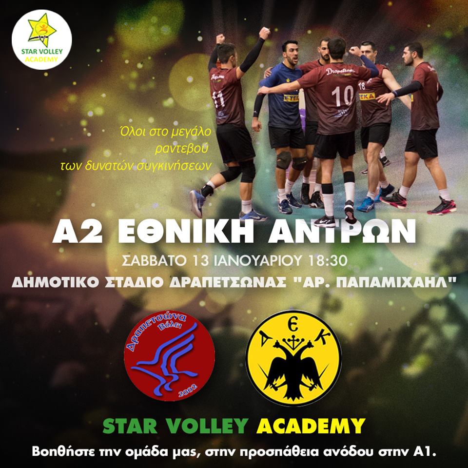 Live Streaming η αναμέτρηση Α2 Βόλλευ Ανδρών ΔΑΣ Δραπετσώνας- AEK το Σάββατο στις 18:30