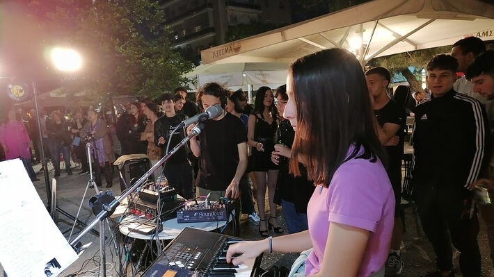 Στη συνέχεια πήραν τη σκυτάλη τα μαθητικά συγκρότημα από σχολεία της περιοχής, ενώ άφθονο γέλιο χάρισε ο Αχιλλέας Μαρμαρίδης με το stand up comedy. Ιδιαίτερη στιγμή ήταν όταν το μουσικό συγκρότημα του 4ου ΓΕΛ παρουσίασε ένα μουσικό κομμάτι γραμμένο από τους ίδιους τους μαθητές και αφιερωμένο στα 57 θύματα από το έγκλημα στα Τέμπη.