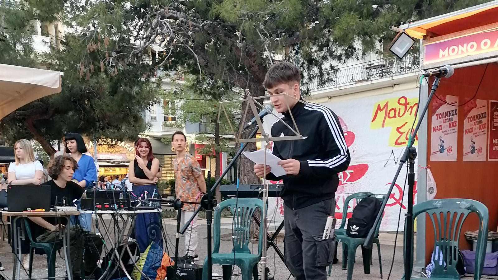 Η συναυλία ξεκίνησε με χαιρετισμό από το Βαγγέλη Ρούσσο μαθητή και πρόεδρο του 15μέλους συμβουλίου του 2ου ΕΠΑΛ Νέας Σμύρνης. Κάλεσε όλους τους μαθητές να κάνουν το βήμα και να συμμετέχουν στις εκλογές της 21ης Μάη δίνοντας τη ψήφο τους στο ΚΚΕ λέγοντας χαρακτηριστικά: «Η ψήφος μας δεν είναι πλάκα γιατί δεν είναι πλάκα τα αδιέξοδα που ζούμε καθημερινά. Η συμμετοχή μας με ψήφο στο ΚΚΕ είναι αυτή που μπορεί να τους τιμωρήσει, να τους φοβίσει. Θα ψηφίσουμε ΚΚΕ και θα τους χαλάσουμε τα σχέδια. Θα ψηφίσουμε αγωνιστικά, αντισυστημικά, θα φέρουμε τα πάνω- κάτω!».