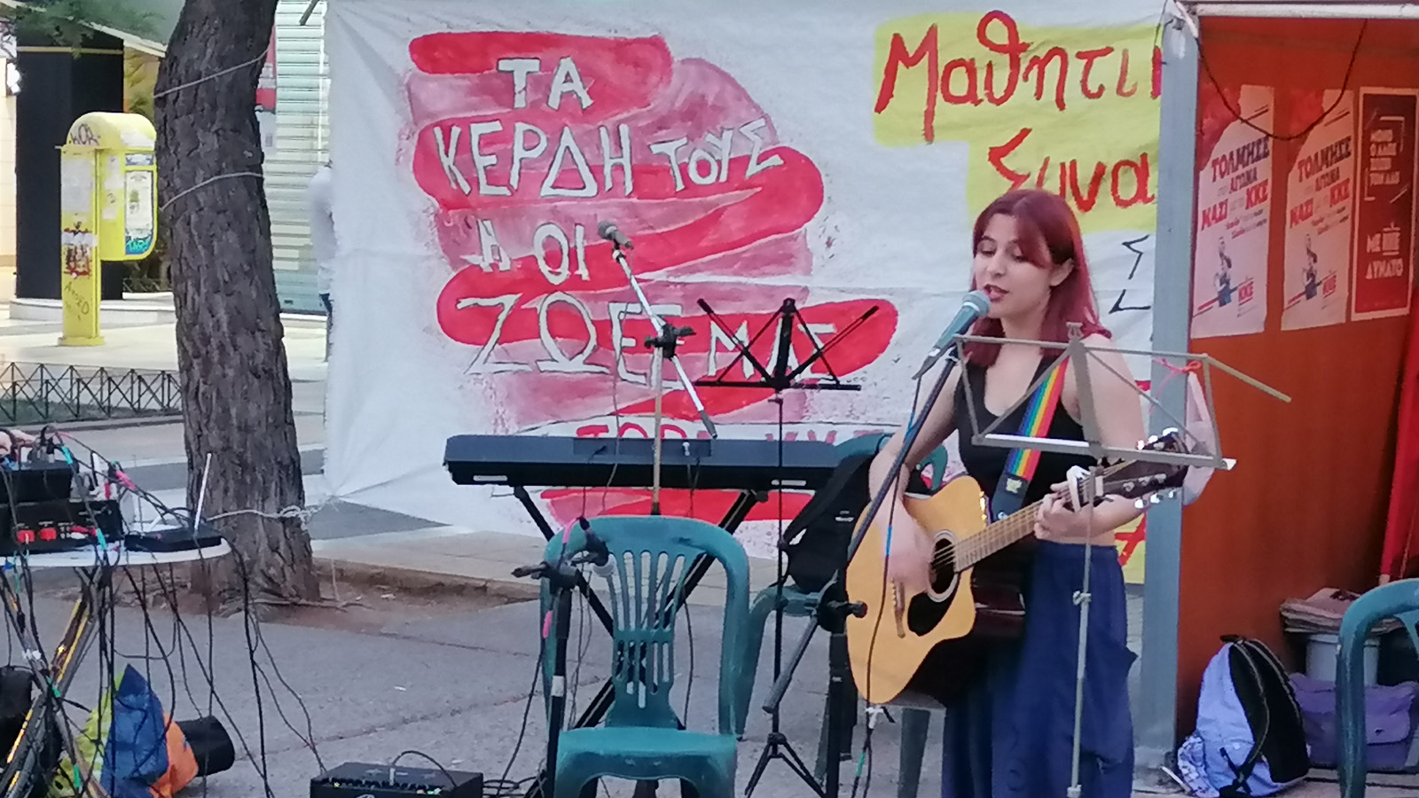 Πλήθος μαθητών παρευρέθηκαν στη μαθητική συναυλία που πραγματοποιήθηκε στις 7 Μάη στο εκλογικό περίπτερο του ΚΚΕ στην πλατεία Νέας Σμύρνης.