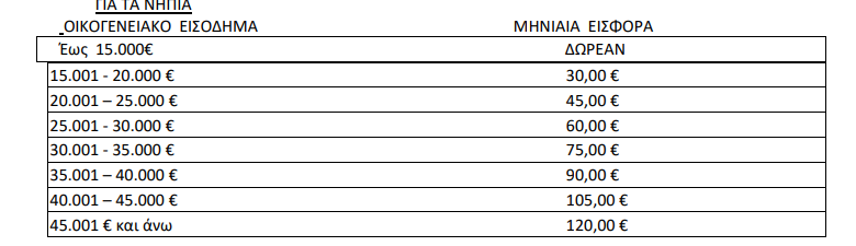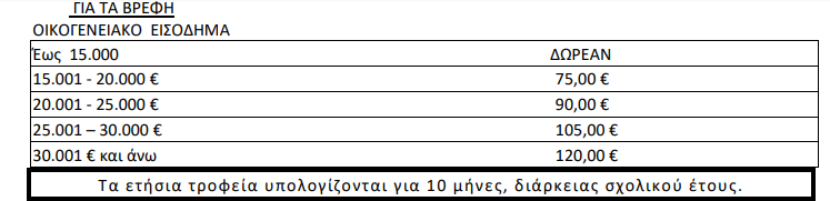 Στα βρέφη στην κατηγορία από 20.001 εως 25.000 έχει αύξηση 10ευρώ σε σχέση με το 2019-20