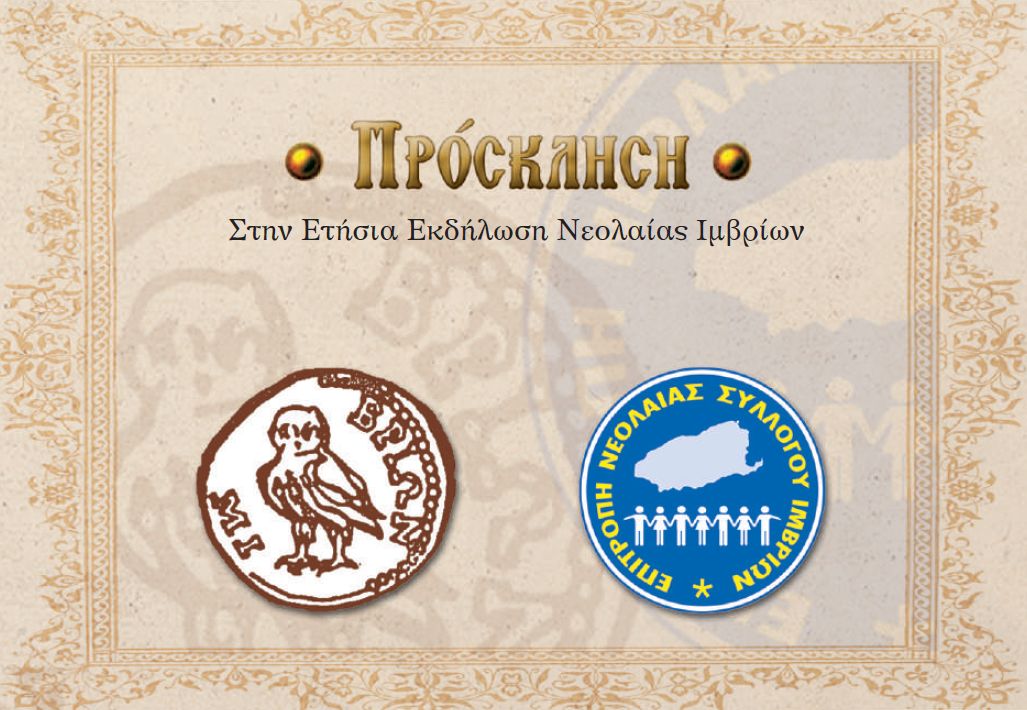 Η Επιτροπή Νεολαίας του Συλλόγου Ιμβρίων στο πλαίσιο των δράσεών της διοργανώνει την Ετήσια Εκδήλωση της Νεολαίας Ιμβρίων την προσεχή Τρίτη 31 Οκτωβρίου 2017 και ώρα 6:00 μ.μ. στην αίθουσα εκδηλώσεων του Συλλόγου Ιμβρίων.