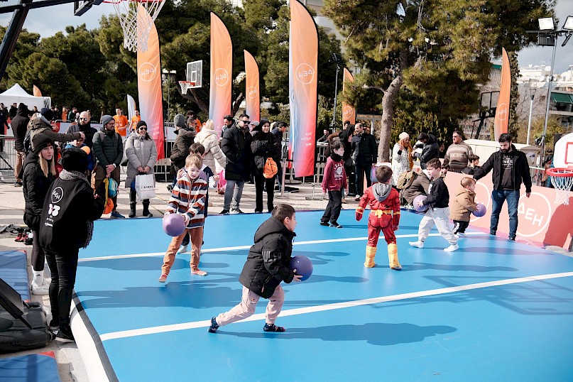 Οι λιλιπούτειοι φίλοι του μπάσκετ διασκέδασαν στο φουσκωτό γήπεδο, δοκίμασαν το πρωτότυπο παιχνίδι «μουσικές μπάλες» και κέρδισαν αναμνηστικά δώρα. Οι μπασκέτες για ελεύθερο παιχνίδι γέμισαν από μικρούς και μεγάλους, ενώ τα Basketball Arcade Games δοκίμασαν την ταχύτητα και την ικανότητα όλων στο σουτ. Το 360° Photo Booth απαθανάτισε τις πιο δυνατές στιγμές και το Face Painting corner έβαλε χρώμα στη γιορτή, με τα παιδικά πρόσωπα να “μεταμορφώνονται” σε λαμπερές μπάλες μπάσκετ. Την απόλυτη μπασκετική ατμόσφαιρα συμπλήρωσε ο Kiss FM, με τις μουσικές του να ανεβάζουν το κέφι, αλληλεπιδρώντας με το κοινό.