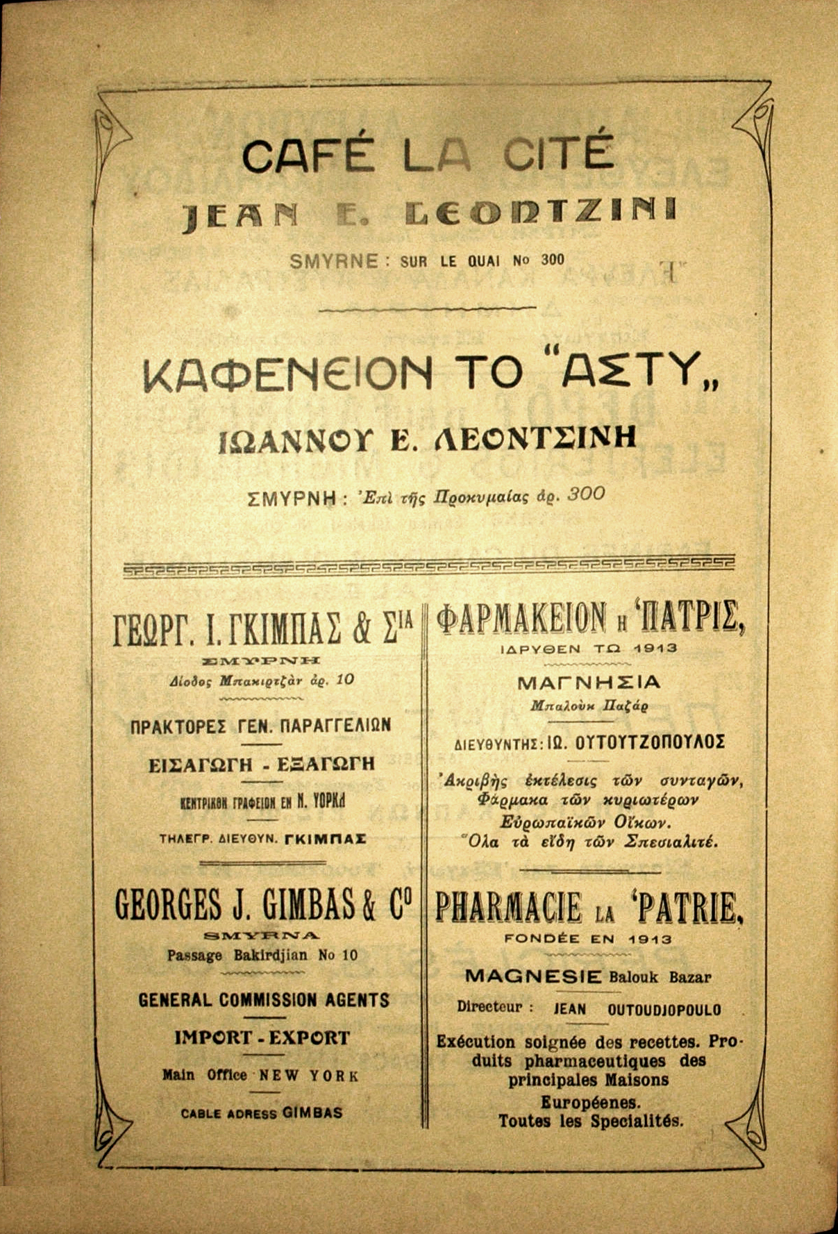 ΜΝΗΜΗ ΣΜΥΡΝΗΣ 3. Αγαπητοί φίλοι συνεχίζω σήμερα την αποστολή μερικών ακόμη σελίδων από τον "Οδηγό της Ελλάδος του Νικόλαου Ιγγλέση. Επιδίωξή μου είναι να ολοκληρώσω όλο το τμήμα που αναφέρεται στην Ασιατική Ελλάδα και να σας το αποστέλλω τμηματικά. Υπολείπονται 100 σελίδες για την πόλη της Σμύρνης και 45 για τη γύρω περιοχή. Ας είναι η προσπάθεια αυτή η ελάχιστη προσφορά τιμής και μνήμης σε όλους τους ανθρώπους που χάθηκαν.