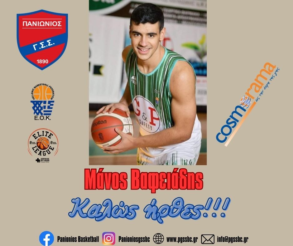 Την απόκτηση του νεαρού αθλητή Μάνου Βαφειάδη ανακοίνωσε η ομάδα μπάσκετ του Πανιωνίου. Ο 19χρονος καλαθοσφαιριστής πέρσι αγωνίστηκε στην Elite League με τη φανέλα της ΦΕΑ ΝΦ/ΝΧ.