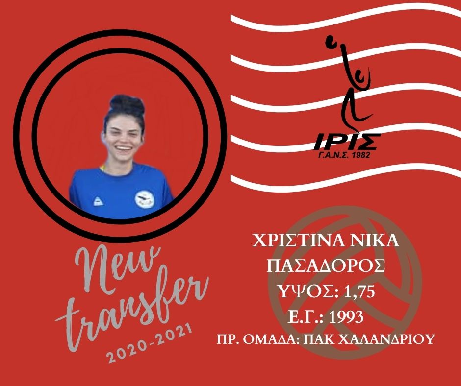 Νέο απόκτημα για την Γυναικεία ομάδα, στη θέση της πασαδόρου, με την μεταγραφή της αθλήτριας Χριστίνας Νίκα.