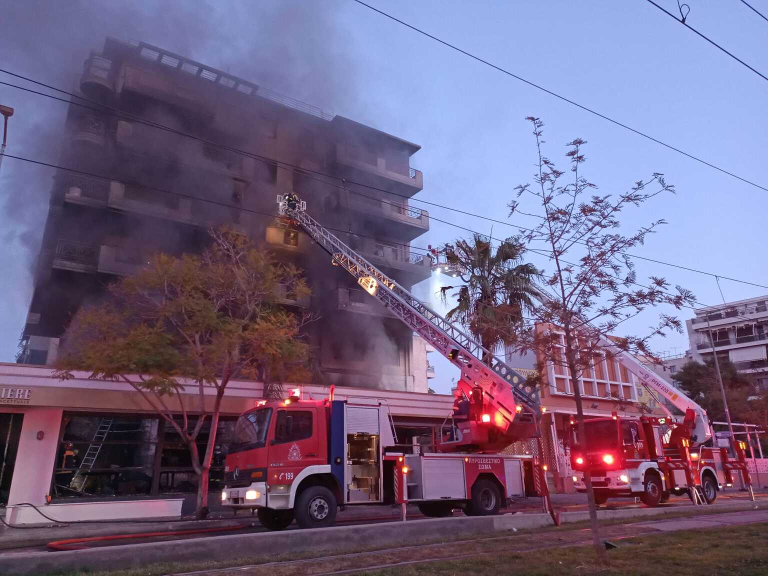 Πλέον, η πυρκαγιά έχει κατασβεστεί και συνεχίζονται οι έρευνες στα διαμερίσματα της πολυκατοικίας.