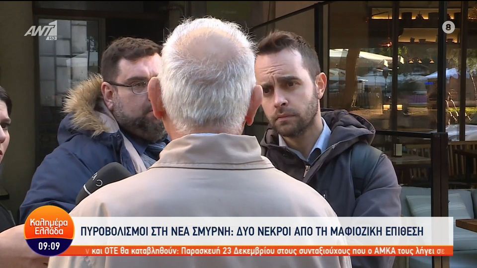 ύο νεκροί είναι ο απολογισμός της μαφιόζικης επίθεσης στην πλατεία Νέας Σμύρνης. Ο μαυροφορεμένος εκτελεστής άνοιξε πυρ σε κατάμεστη καφετέρια, σκοτώνοντας δύο άνδρες αλβανικής καταγωγής. Η Αστυνομία θεωρεί πως πρόκειται για ξεκαθάρισμα λογαριασμών αφού ένας από τους νεκρούς ήταν εισπράκτορας κυκλώματος που πουλάει προστασία στα μαγαζιά της περιοχής.