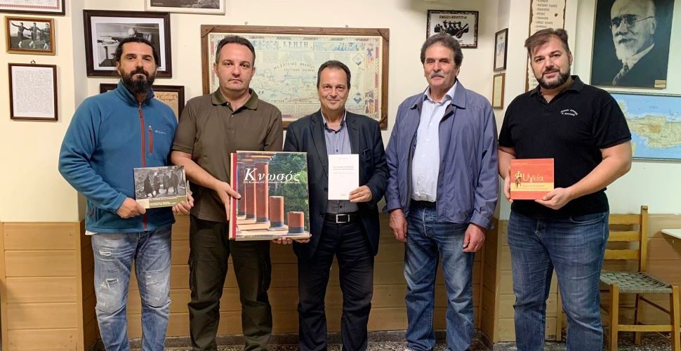 Σκοπός της επίσκεψης ήταν η δωρεά τριών βιβλίων για την βιβλιοθήκη του Συλλόγου. Τα βιβλία που κοσμούν πλέον την δανειστική βιβλιοθήκη είναι ‘Κνωσσός – Στο κατώφλι του Ευρωπαϊκού Πολιτισμού’ , ‘Κρητικές Μαντινάδες’ και ‘Κρητικές Επαναστάσεις 1821-1905’.