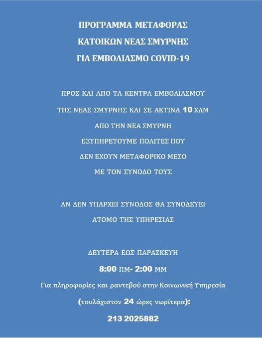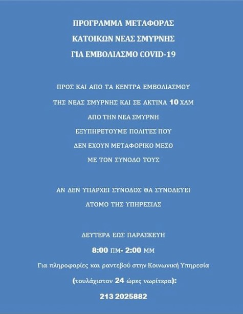 Νέα Σμύρνη: Πρόγραμμα μεταφοράς κατοίκων για εμβολιασμό COVID-19