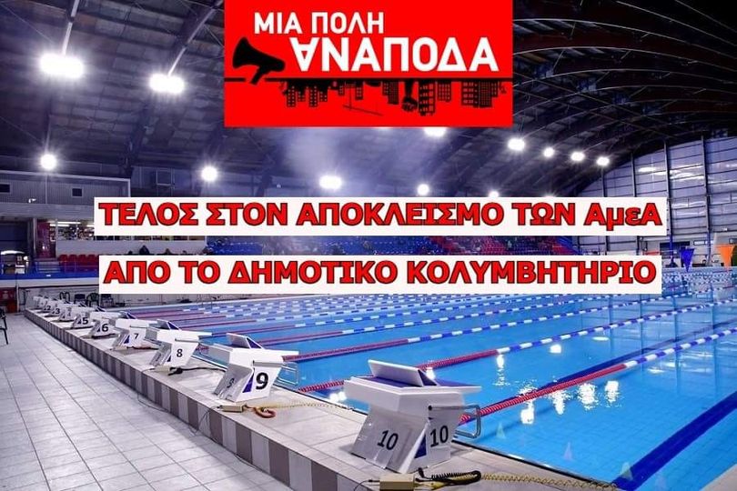 Έχει γίνει αντιληπτό λοιπόν, ότι η Δημοτική Αρχή έχει αποκλείσει όσα άτομα με αναπηρία δεν είναι δημότες και κάτοικοι, στερώντας τους το δικαίωμα σε θεραπευτικό πρόγραμμα, το οποίο μέχρι πρότινος εκτελούσαν κανονικά στο κολυμβητήριο Νέας Σμύρνης.
