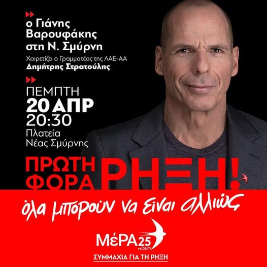 Η προεκλογική εκστρατεία του "ΜέΡΑ25 - Συμμαχία για τη Ρήξη" ξεκινά από εδώ, την ιστορική Πλατεία της Νέας Σμύρνης των αγώνων!