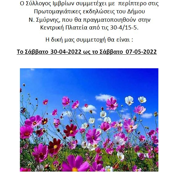 Ο Σύλλογος Ιμβρίων στις Πρωτομαγιάτικες εκδηλώσεις του Δήμου Ν. Σμύρνης