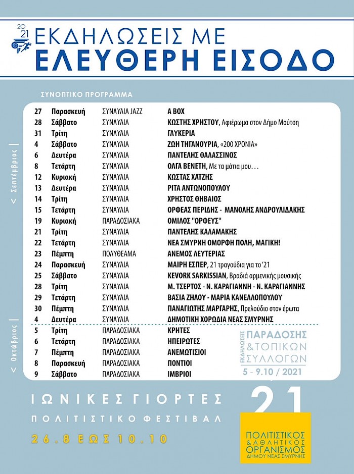Οι εκδηλώσεις με ελεύθερη είσοδο στις Ιωνικές Γιορτές 2021