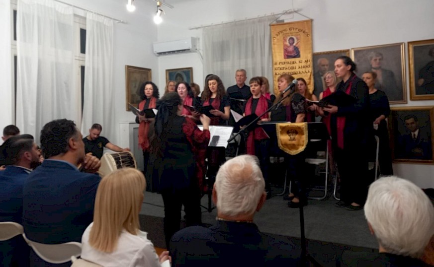 Μ.Γκούλτα και ο Ειδ.Γραμματέας Μ.Μελετζής, περιλάμβανε ιστορική αφήγηση από την πρόεδρο Ράνια Χρυσοχοΐδου με εμβόλιμα τραγούδια από τη Χορωδία της Ένωσης υπό τη