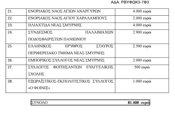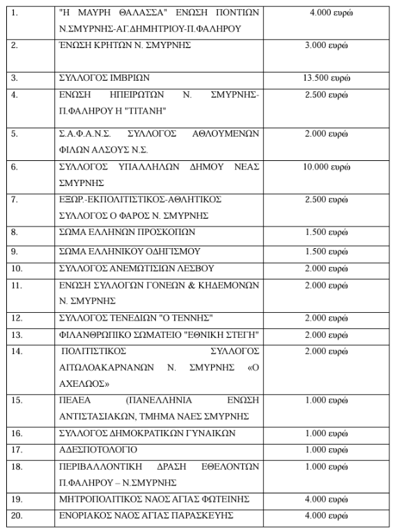 Οι επιχορηγήσεις Αθλητικών και Πολιτιστικών Σωματείων Νέας Σμύρνης