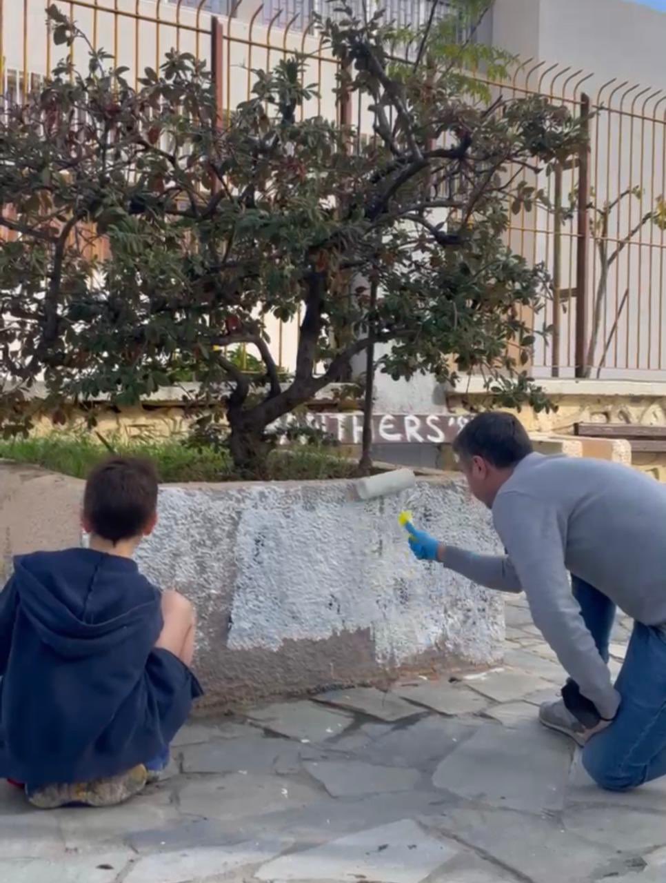 με ανάρτησή του στο Twitter, ο πρώην αντιδήμαρχος καθαριότητας Νέας Σμύρνης, Γιώργος Κρικρής μαζί με μία ομάδα νέων έβαψαν τα πεζούλια στον πεζόδρομο έξω από τα σχολεία στην οδό Τραπεζούντος