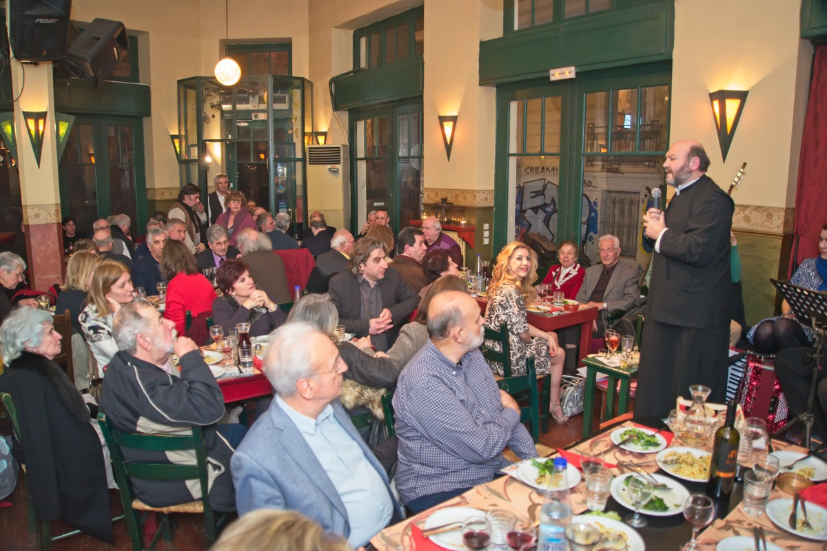 Άκρως επιτυχημένη η συνεστίαση που διοργανώθηκε από το εκκλησιαστικό συμβούλιο του Ιερού Ναού Αγ. Αναργύρων Ψυρρή, το Πολιτιστικό Σωματείο «ΟΙ ΚΟΡΥΦΑΙΟΙ» και με την στήριξη του Πολιτιστικού Συλλόγου ΠΑΝΑΘΗΝΑΙΑ, το απόγευμα της Τρίτης 14 Μαρτίου 2017, στο ρεμπετάδικο Μεθυστάνες στου Ψυρρή.