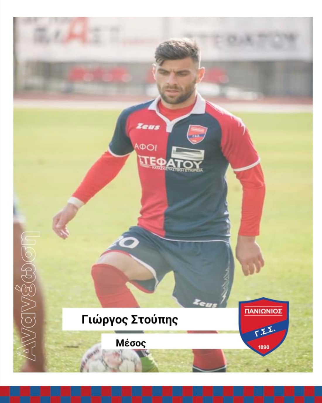 "Η διοικούσα επιτροπή του Πανιώνιου Γ.Σ. Σμύρνης ανακοινώνει την ανανέωση της συνεργασίας με τον ποδοσφαιριστή Γιώργο Στούπη.