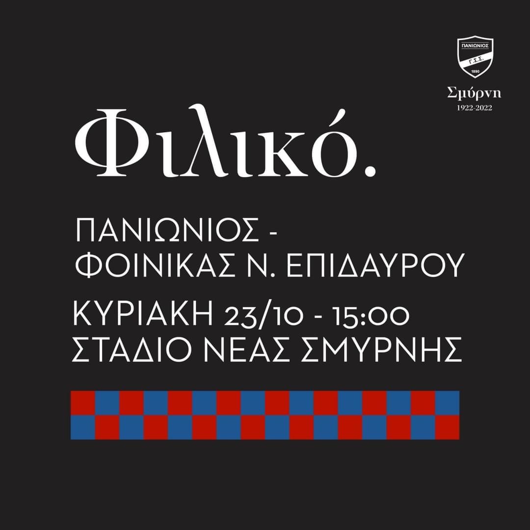 Την Κυριακή 23/10 ο Πανιώνιος φιλοξενεί τον Φοίνικα Νέας Επιδαύρου για ακόμα μια φιλική αναμέτρηση στο στάδιο της Νέα Σμύρνης