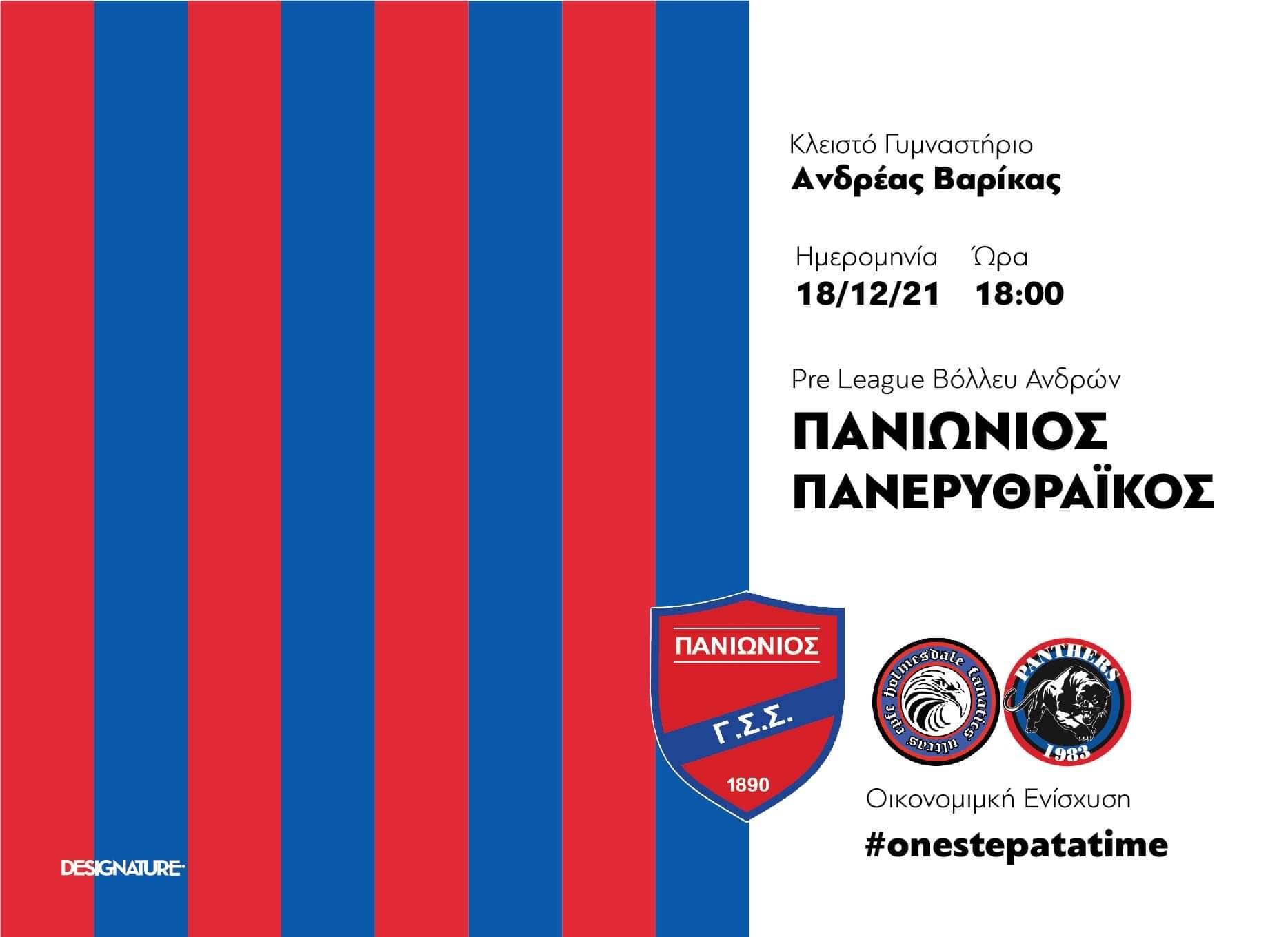 Στο πλαίσιο της 9ης αγωνιστικής του πρωταθλήματος της Pre League, ο Πανιώνιος αντιμετωπίζει τον Πανερυθραϊκό το Σάββατο 18 Δεκεμβρίου, με την αναμέτρηση να ξεκινά στις 18:00.