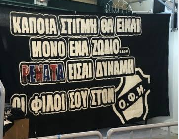 Πανό για τη Ρενάτα στον αγώνα βόλεϊ ΟΦΗ-Πανιώνιος