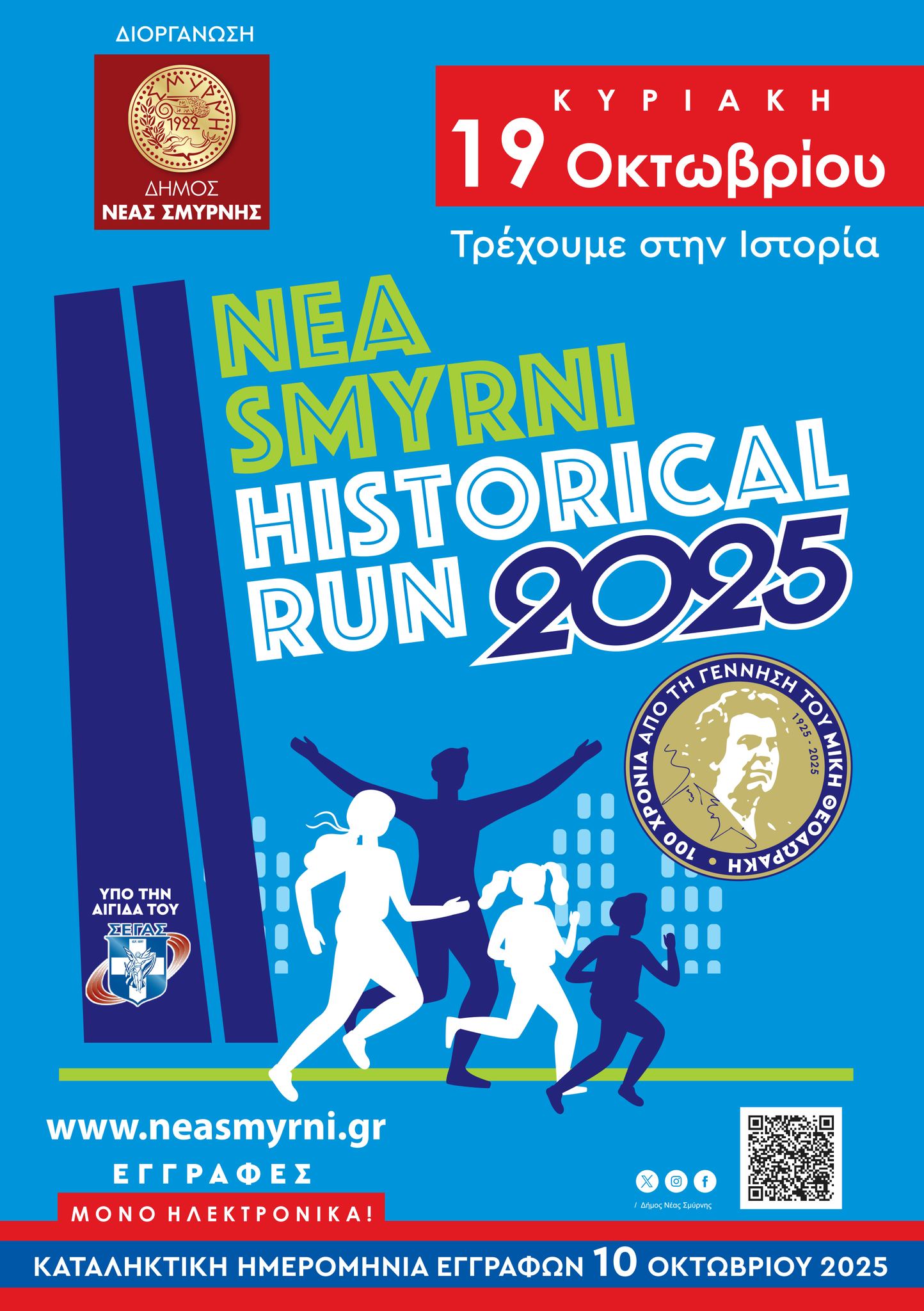 "Με μεγάλη χαρά ενημερώνουμε όλους τους συμμετέχοντες του Nea Smyrni Historical Run 2025 ότι την Κυριακή 19 Οκτωβρίου η πόλη μας θα γεμίσει με ενέργεια, χαμόγελα και δρομείς κάθε ηλικίας.