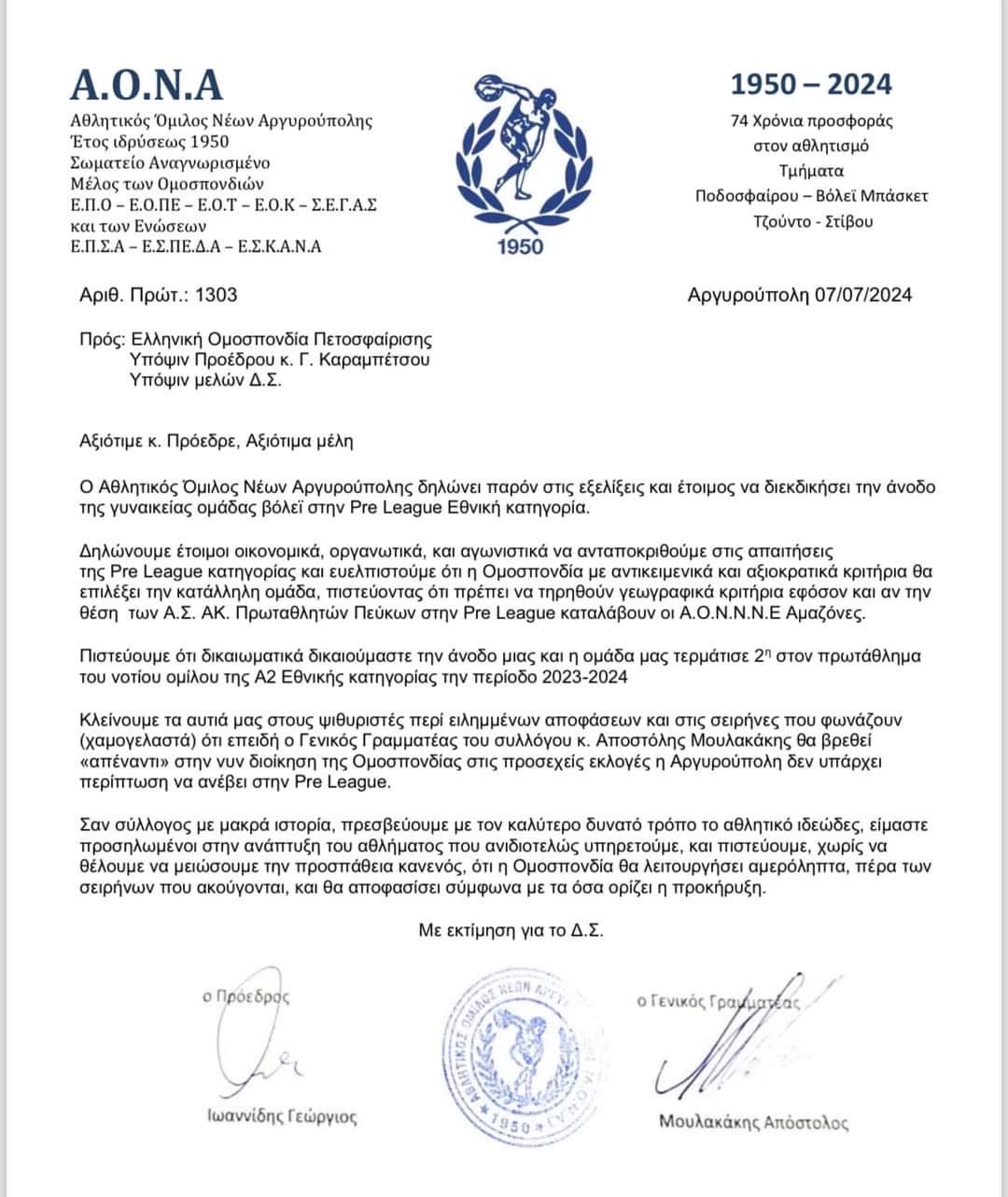 Παρόν στην πιθανότητα ανόδου στην Preleague δηλώνει ο ΑΟΝΑ στο βόλεϊ γυναικών- Ανακοίνωση