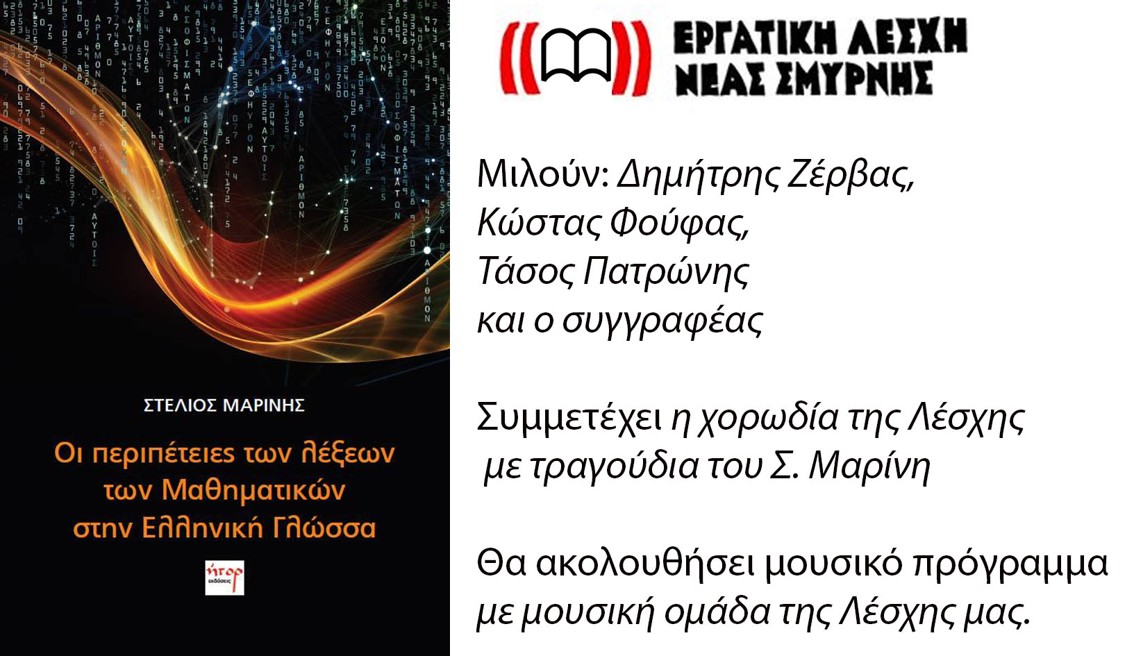 ΟΙ ΠΕΡΙΠΕΤΕΙΕΣ ΤΩΝ ΛΕΞΕΩΝ ΤΩΝ ΜΑΘΗΜΑΤΙΚΩΝ ΣΤΗΝ ΕΛΛΗΝΙΚΗ ΓΛΩΣΣΑ. Παρουσίαση του νέου βιβλίου του Στέλιου Μαρίνη, Σάββατο 17/12 7μ.μ.