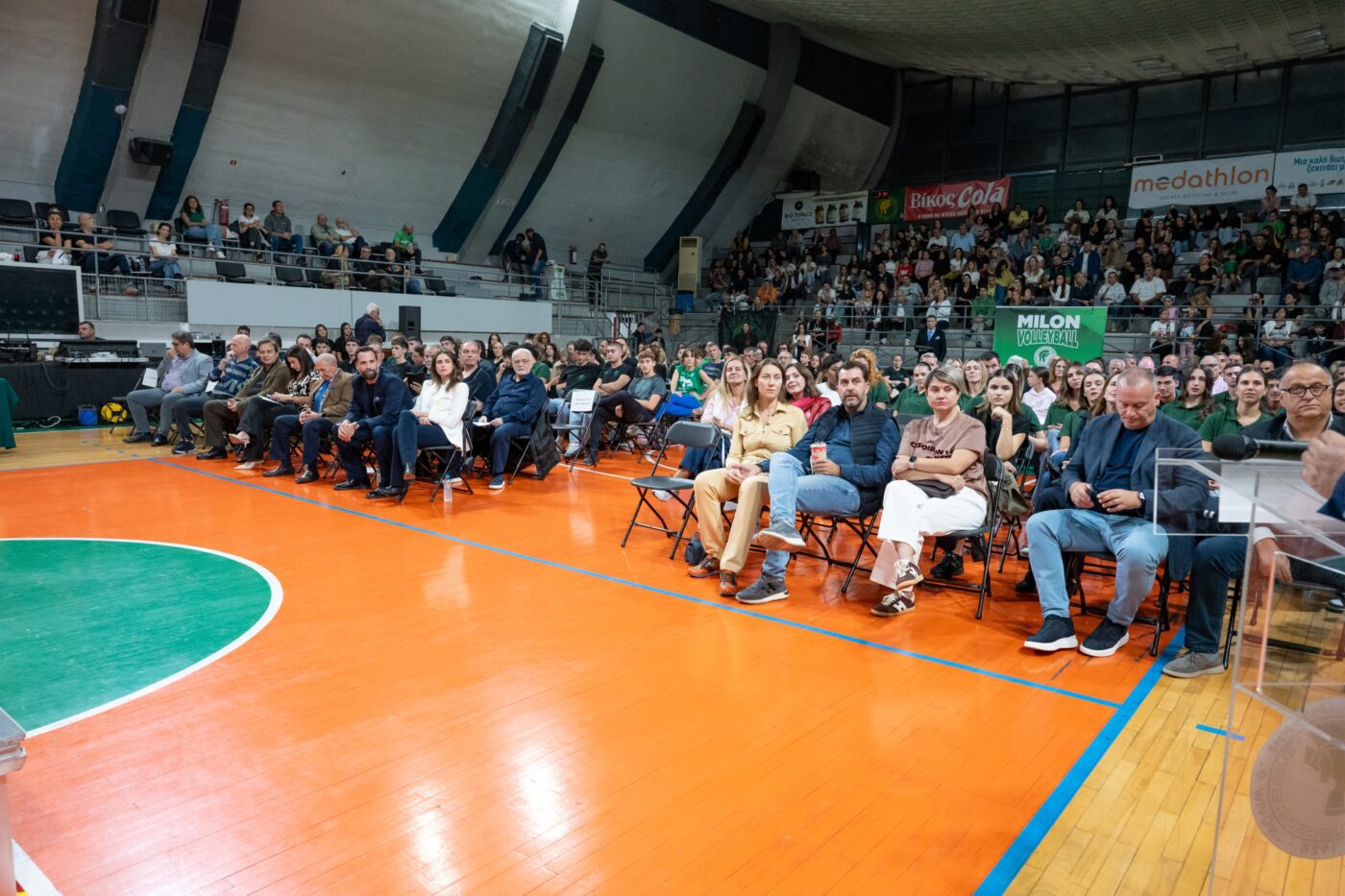 Ζεστό χειροκρότημα εισέπραξαν και οι δεκάδες παλαίμαχοι αθλητές του Μίλωνα, που ανακοίνωσαν την ίδρυση Συλλόγου Παλαιμάχων Αθλητών Πετοσφαίρισης του ΑΟΝΣ ΜΙΛΩΝ, αποδεικνύοντας ότι έχουν την διάθεση να είναι δίπλα στην ομάδα και το άθλημα.