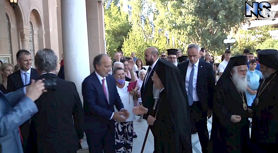 Τον Οικουμενικό Πατριάρχη κ. Βαρθολομαίο, ο οποίος έφτασε λίγο πριν τις 9:00 στον ναό, συνόδευαν ο Μητροπολίτης Σμύρνης κ. Βαρθολομαίος, ο Μητροπολίτης Λαοδικείας κ. Θεοδώρητος, ο Μητροπολίτης Ίμβρου κ. Κύριλλος, ο Μ. Εκκλησιάρχης κ. Αέτιος.