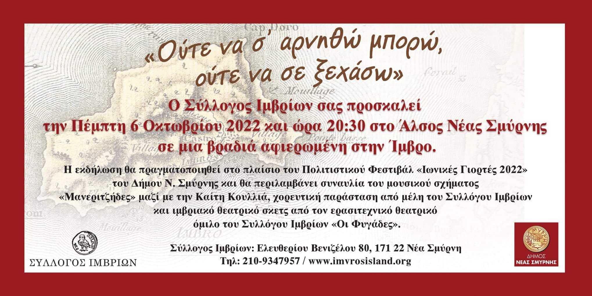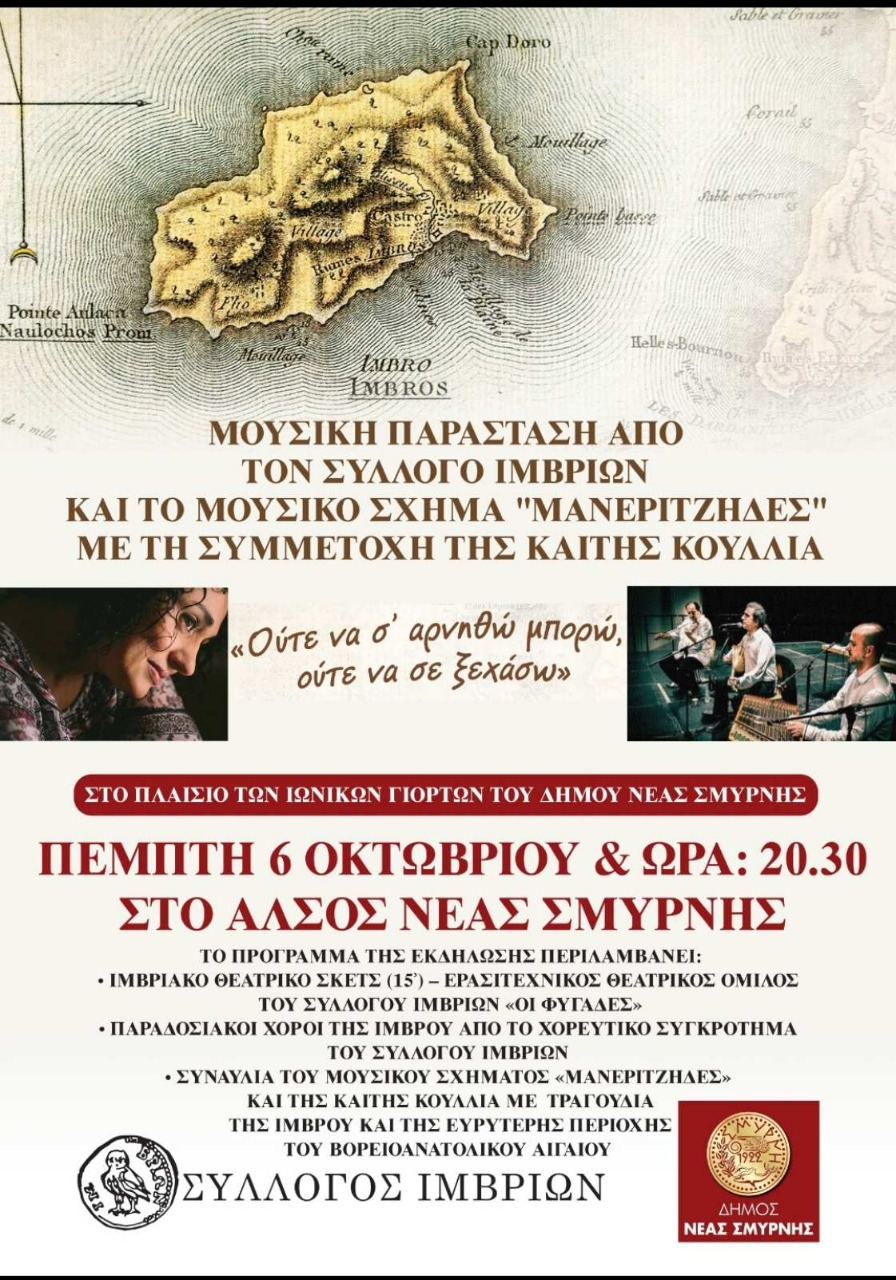 Πέμπτη 6 Οκτωβρίου η εκδήλωση του Συλλόγου Ιμβρίων στις Ιωνικές Γιορτές