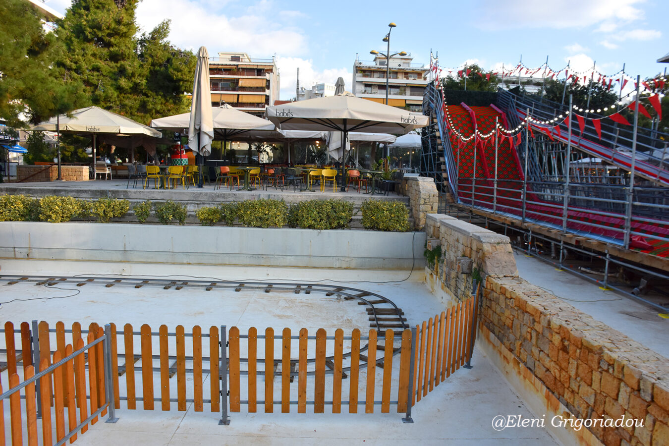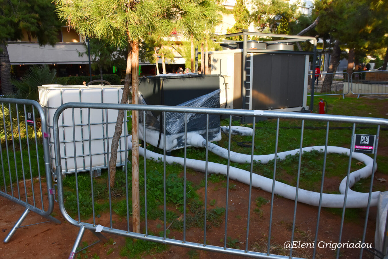 Η υπερπαραγωγή που βλέπουμε έχει στηθεί από ιδιωτική επιχείρηση, στην οποία ο Δήμος παραχώρησε όλο το ελεύθερο από τραπεζοκαθίσματα μέρος της Πλατείας. “Έργο” του Δήμου είναι τα άδεια σiντριβάνια. Θέαμα μάλλον θλιβερό και παρακμιακό, ειδικά τέτοιες μέρες…