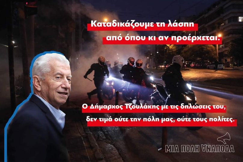 Όταν ο δήμαρχος της πόλης Σταύρος Τζουλάκης δεν κάνει τίποτα για να στηρίξει τους κατοίκους της πόλης που πλήττονται από την πανδημία αλλά κάνει υποκλίσεις στην κυβέρνηση της ΝΔ. Μια κυβέρνηση που μόνο καταστέλλει με τα ΜΑΤ, χωρίς να προστατεύει τους πολίτες.