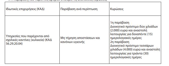 Λειτουργία κυλικείων και χώρων σίτισης - κυρώσεις
