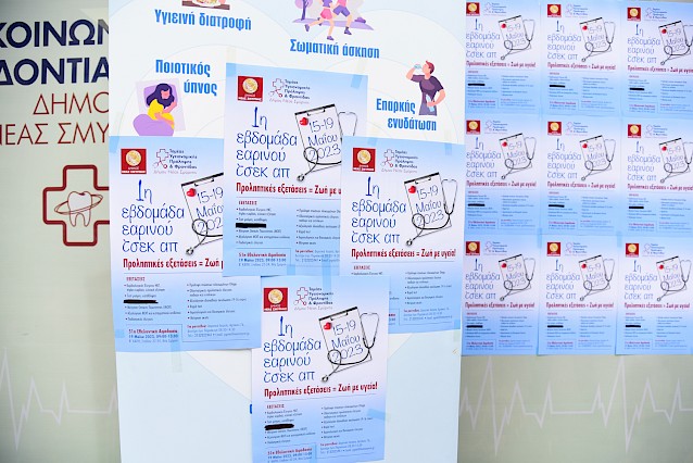 Για πρώτη φορά στη Ν. Σμύρνη πραγματοποιήθηκε Εβδομάδα Εαρινού Τσεκ Απ από 15-22 Μαΐου για όλους τους κατοίκους της Ν. Σμύρνης, η οποία περιελάμβανε μεγάλο αριθμό Δωρεάν Διαγνωστικών Εξετάσεων που αφορούσαν την σωματική και ψυχική υγεία των πολιτών. Οι εξετάσεις έγιναν στα Δημοτικά Ιατρεία ( Αρτάκης 76-78) και σε συνεργαζόμενους Φορείς και αφορούσαν: