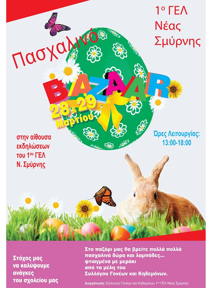 Πρόσκληση στο Πασχαλινό Παζάρι του 1ου ΓΕΛ Νέας Σμύρνης στις 28 και 29 Μαρτίου