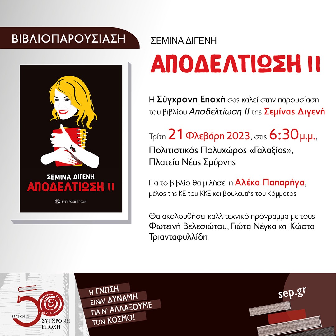 Η Σύγχρονη Εποχή σας καλεί στην παρουσίαση του βιβλίου Αποδελτίωση II της Σεμίνας Διγενή.