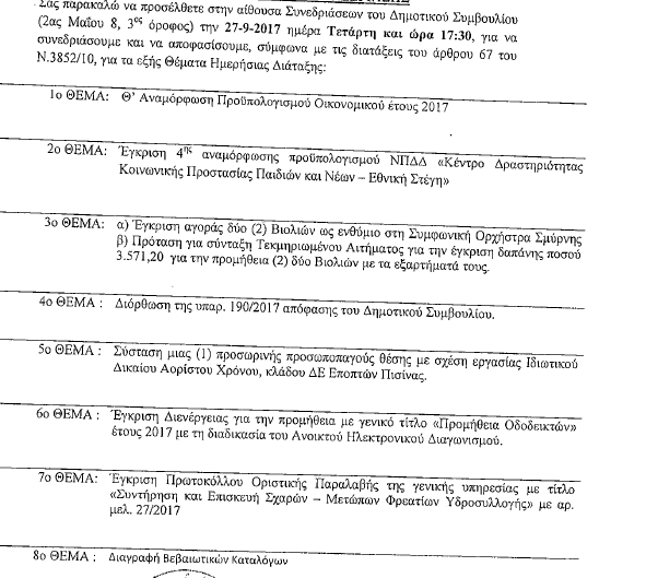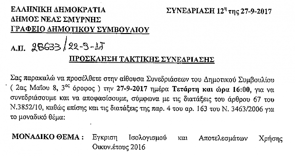 Πρόσκληση σε διπλό Δημοτικό Συμβούλιο την Τετάρτη στην Νέα Σμύρνη
