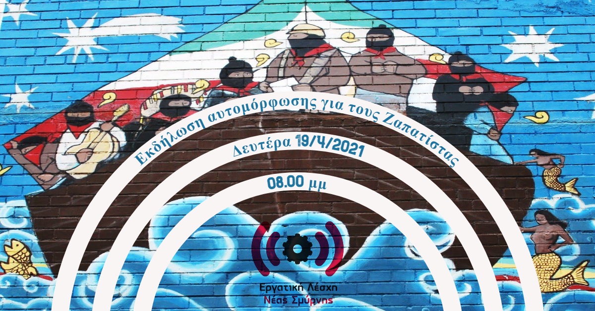 Με αφορμή την επίσκεψη των Ζαπατίστας στην Ευρώπη και την Ελλάδα, η Εργατική Λέσχη Νέας Σμύρνης οργανώνει εκδήλωση αυτομόρφωσης σχετικά με το κίνημα των Ζαπατίστας.