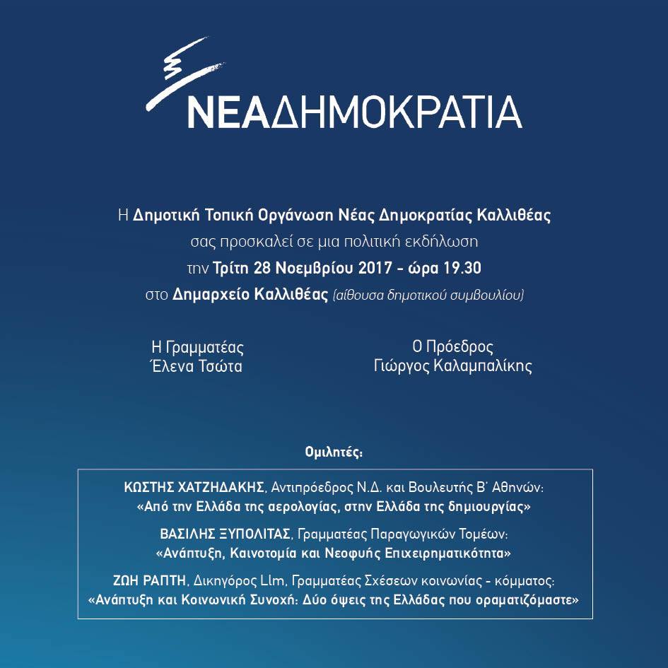 Πρόσκληση σε εκδήλωση ΔΗΜΤΟ Νέας Δημοκρατίας στην Καλλιθέα