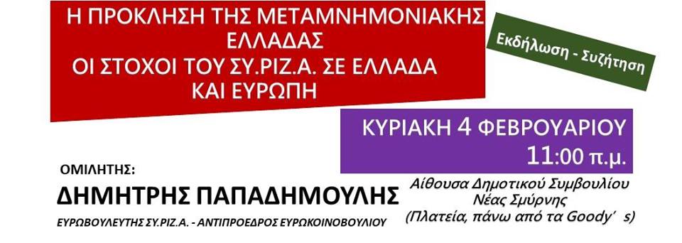 Πρόσκληση σε εκδήλωση-συζήτηση από τον ΣΥΡΙΖΑ Νέας Σμύρνης
