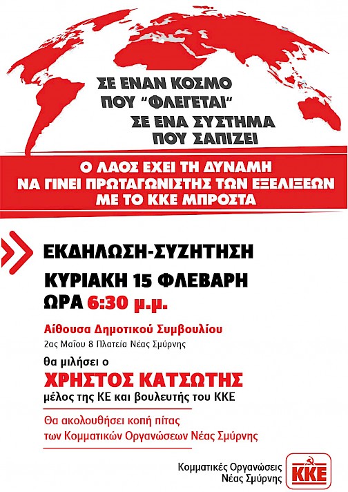 Πρόσκληση σε Εκδήλωση – Συζήτηση ΚΟ Νέας Σμύρνης του ΚΚΕ