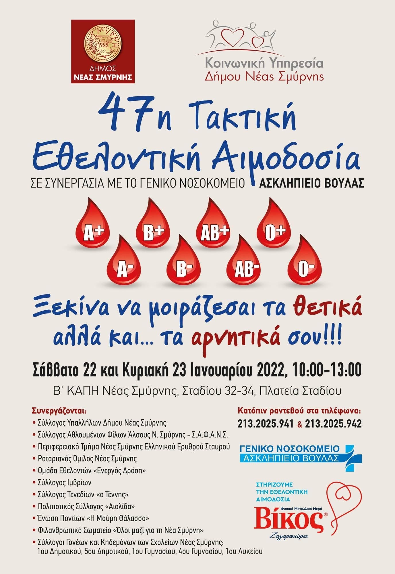 Πρόσκληση σε εθελοντική αιμοδοσία από το Δήμο Νέας Σμύρνης