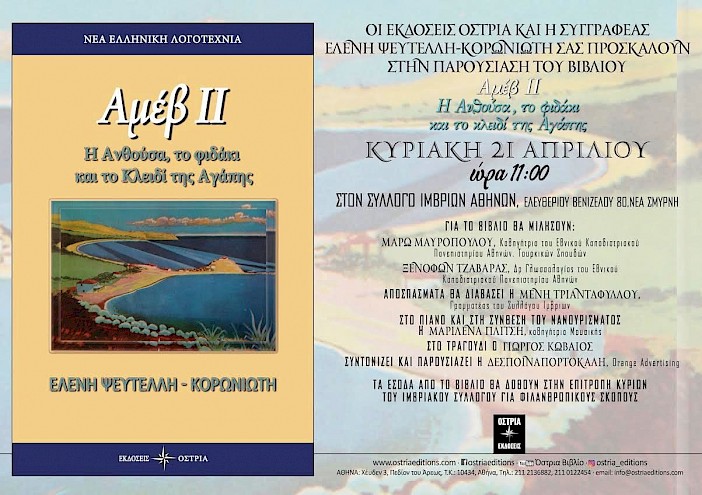 Πρόσκληση σε παρουσίαση βιβλίου στη Νέα Σμύρνη από το Σύλλογο Ιμβρίων