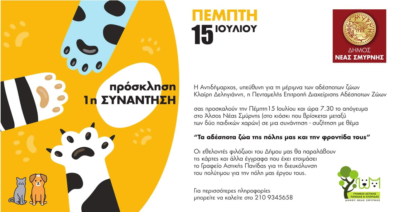 Πρόσκληση σε συνάντηση-συζήτηση για τα αδέσποτα από το Δήμο Νέας Σμύρνης
