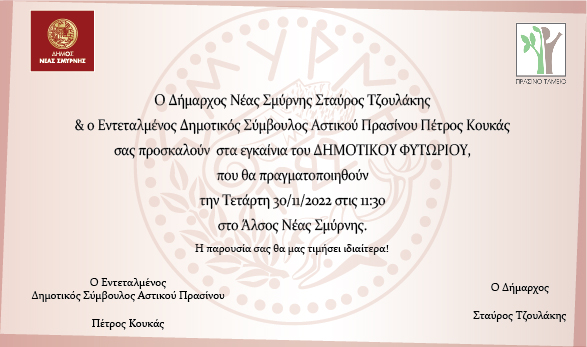 Πρόσκληση στα εγκαίνια του Δημοτικού φυτωρίου στο Άλσος Νέας Σμύρνης