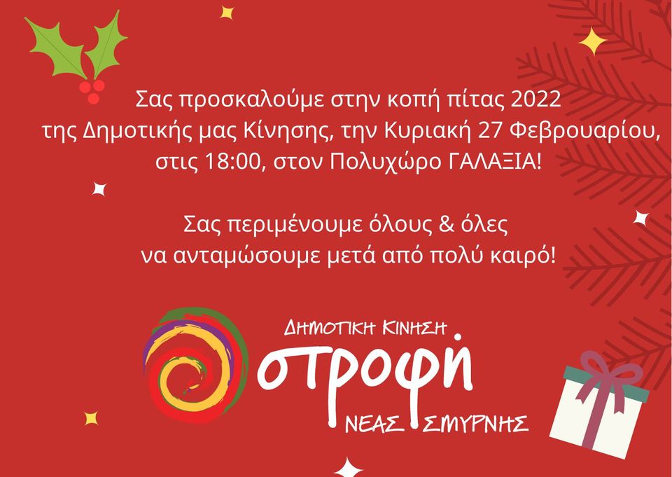 Πρόσκληση στην Κοπή πίτας της ''Στροφής Νέας Σμύρνης''